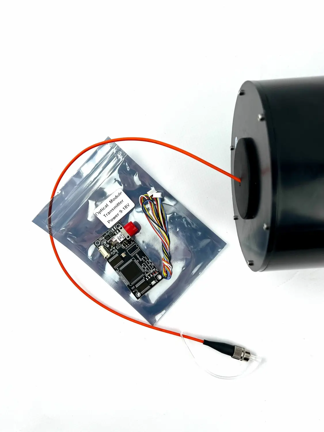 Також в комплектацію входить передавач оптичного модуля – пристрій, який приймає електричний сигнал як вхідний і перетворює його в оптичний сигнал, з метою модуляції оптоелектронного пристрою.