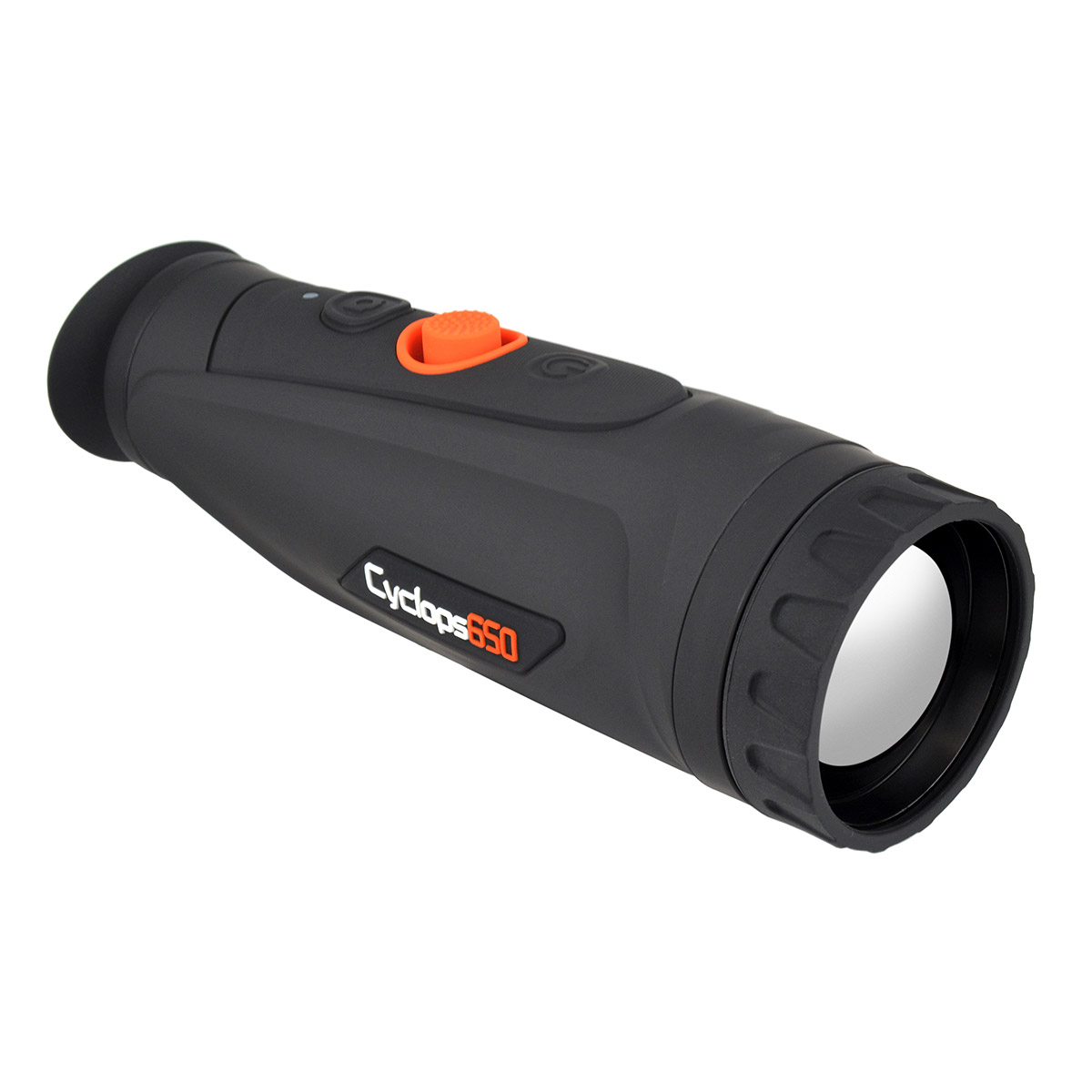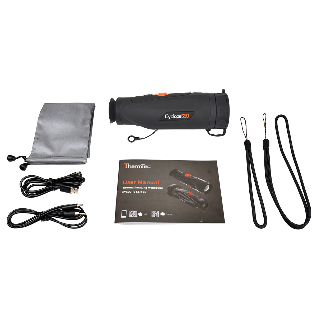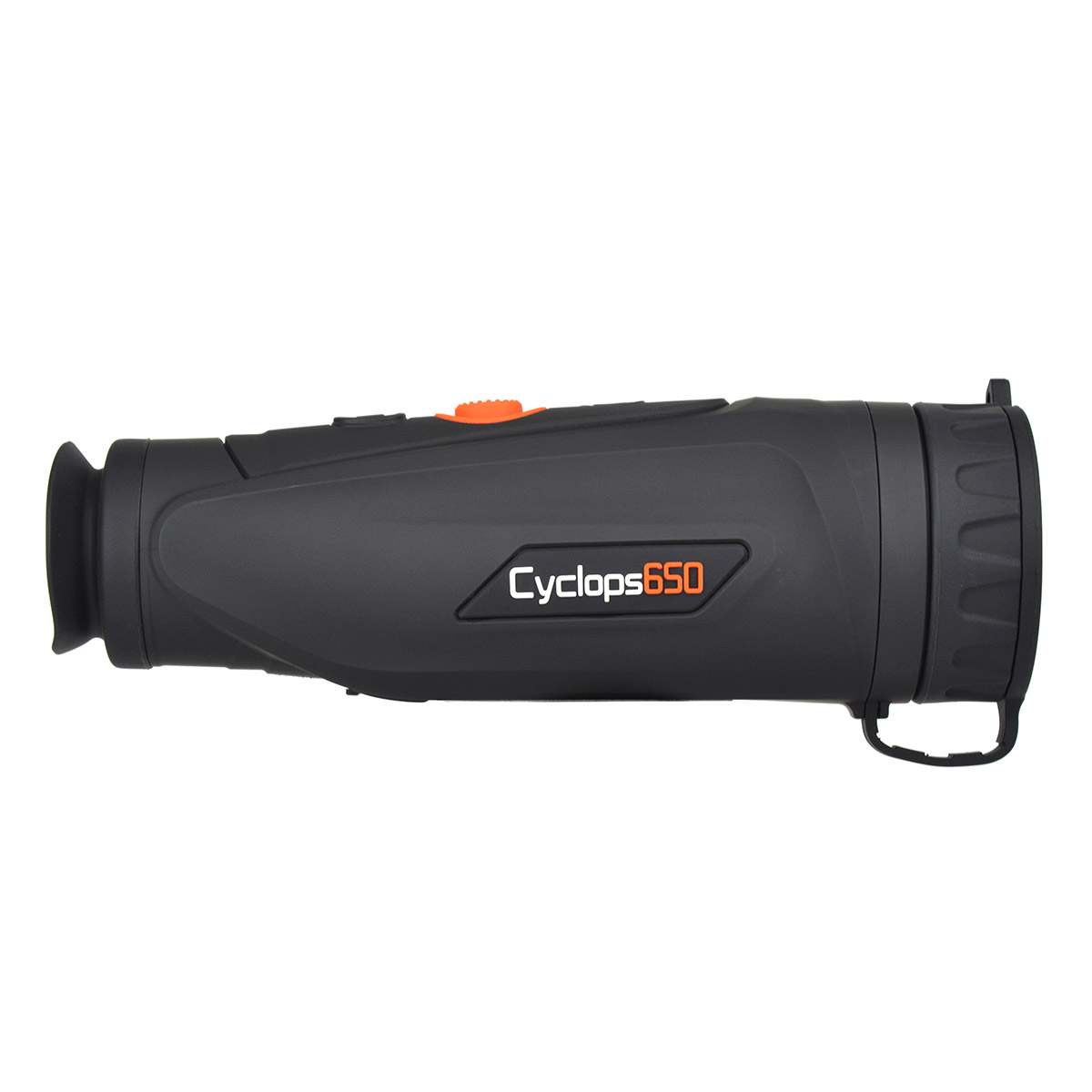 ThermTec (ThermEye) Cyclops 650 – це флагманський тепловізійний монокуляр високої чіткості, який пропонує першокласні експлуатаційні показники. Сучасна матриця роздільною здатністю 640х512 пікселів працює у довгохвильовому інфрачервоному спектрі (8-14μm), та здатна фіксувати мінімальні перепади температур. Потужний 50-мм об’єктив відрізняється максимальною дальністю дії серед усіх монокулярів серії, зберігаючи при цьому комфортний кут зору. Лінійне поле зору на 100 м по горизонталі та вертикалі становить відповідно 15.4 x 12.2 метрів. Тепловізор однаково добре підходить як для спостережень на протяжні відстані, так і для виявлення джерел тепла на максимальних дистанціях. Для більш детального вивчення віддалених об’єктів передбачено високоякісний цифровий зум з плавним збільшенням.